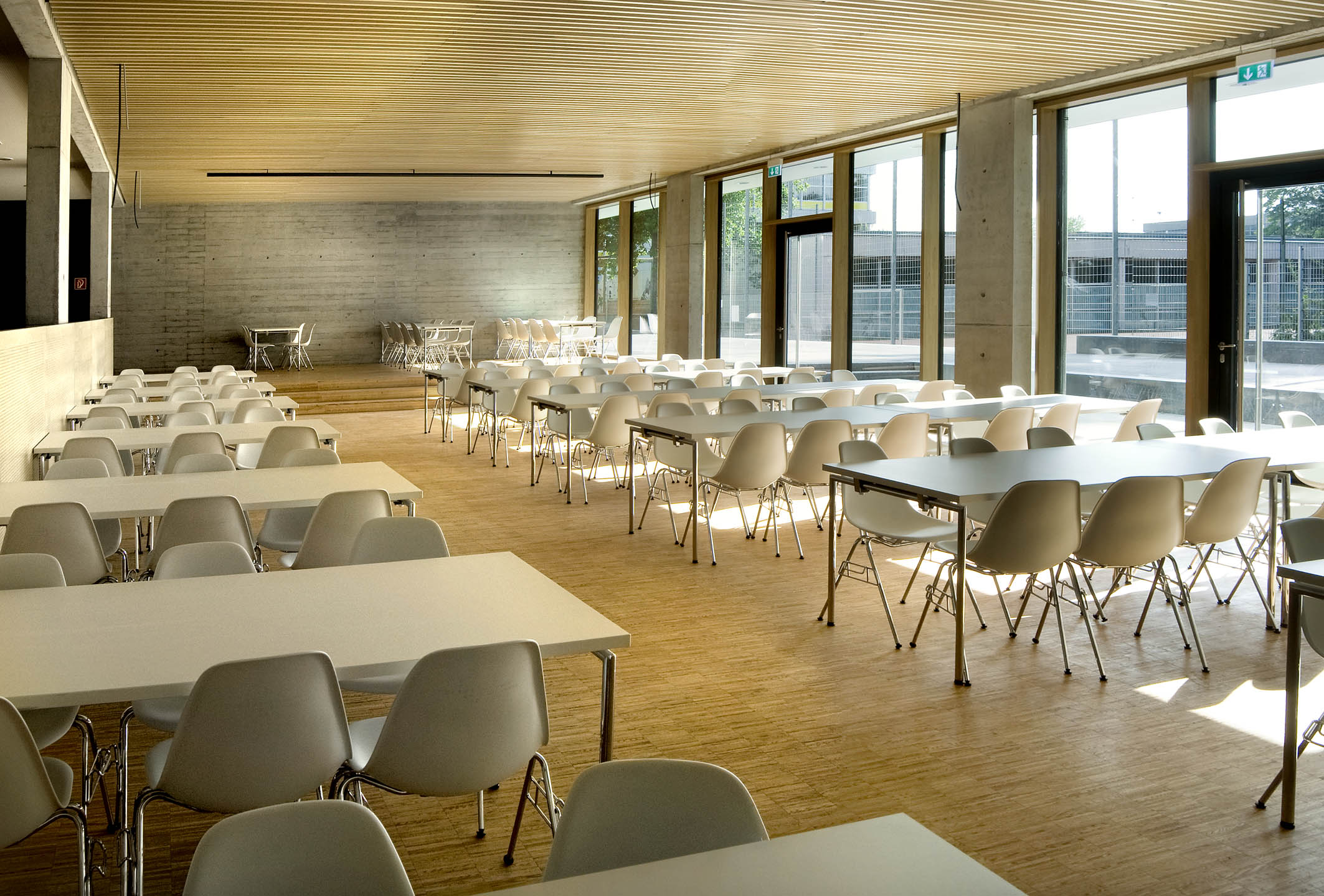 Die Mensa bietet Montag bis Freitag von 12.00 Uhr bis 14.00 Uhr zwei Menüs zur Auswahl an. Sie verfügt über 130 Sitzplätze und kann auch für andere Veranstaltungen genutzt werden.